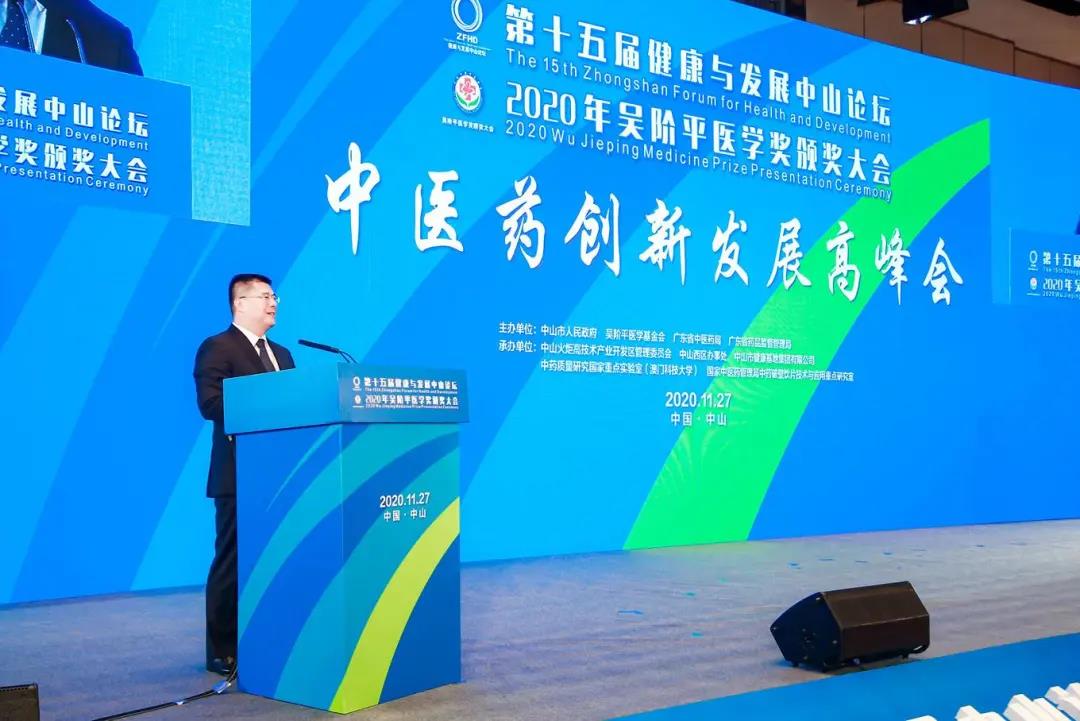 高峰會由中山市人民政府、吳階平醫(yī)學基金會、廣東省中醫(yī)藥局、廣東省藥品監(jiān)督管理局聯(lián)合主辦,中山火炬高技術產(chǎn)業(yè)開發(fā)區(qū)管理委員會、中山國家健康科技產(chǎn)業(yè)基地、中藥質(zhì)量研究國家重點實驗室(澳門科技大學)、國家中醫(yī)藥管理局中藥破壁飲片技術與應用重點研究室聯(lián)合承辦,是第十五屆健康與發(fā)展中山論壇、2020年吳階平醫(yī)學獎頒獎大會系列平行論壇之一。