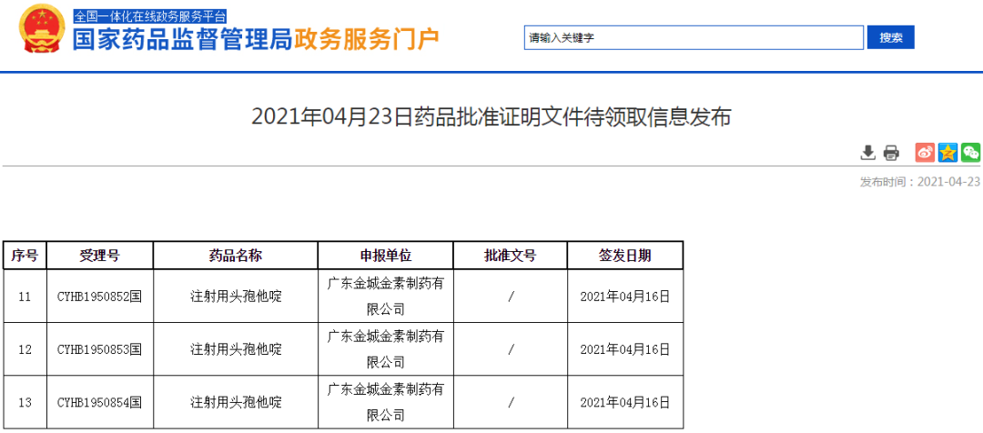4月23日,NMPA官網(wǎng)顯示,健康基地集團園區(qū)企業(yè)廣東金城金素制藥有限公司(下稱:金城金素)生產(chǎn)的注射用頭孢他啶通過一致性評價。注射用頭孢他啶為第五批擬集采品種,米內(nèi)網(wǎng)數(shù)據(jù)顯示,2019年中國公立醫(yī)療機構(gòu)終端頭孢他啶銷售額超過60億元。