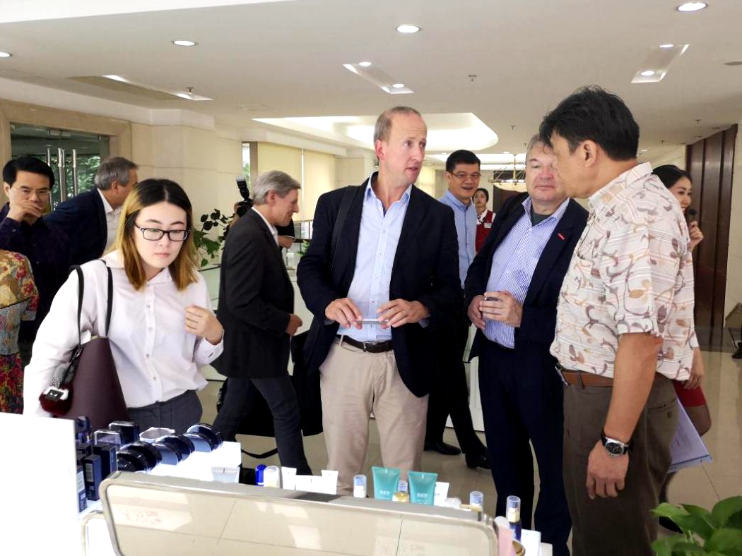下午,考察團(tuán)一行來到完美(中國)有限公司總部進(jìn)行參觀,并就新技術(shù)合作項(xiàng)目與代表團(tuán)進(jìn)行座談交流。完美公司董事長古潤金,總裁胡瑞連等參加了活動。