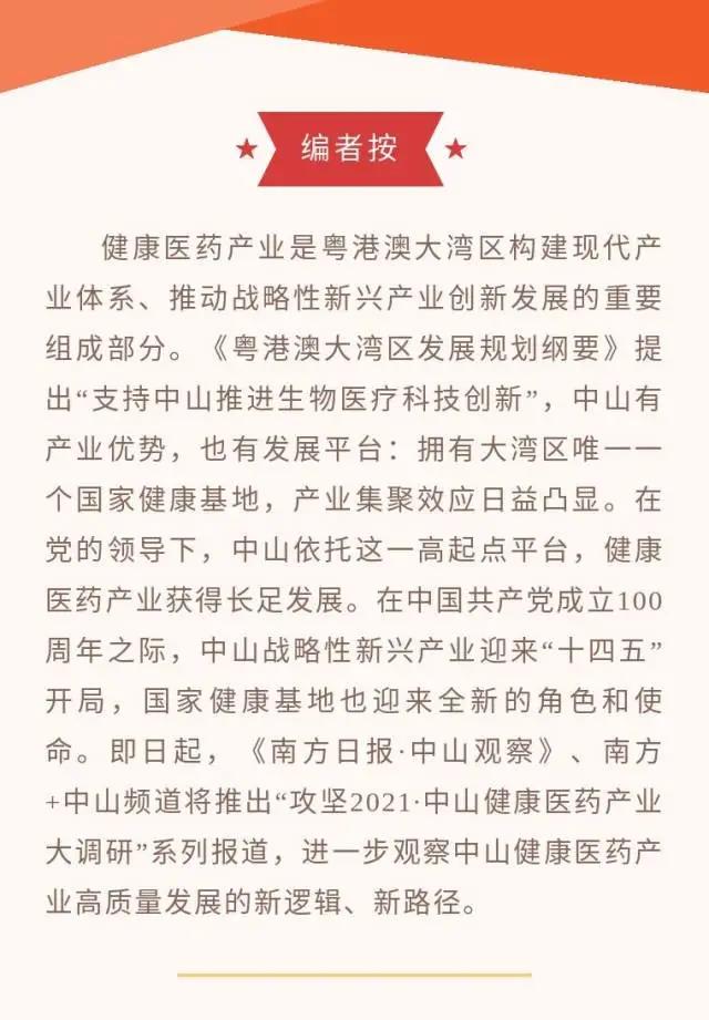 健康醫(yī)藥產(chǎn)業(yè)作為中山市三大戰(zhàn)略性新興產(chǎn)業(yè)之一,火炬開(kāi)發(fā)區(qū)三大重點(diǎn)產(chǎn)業(yè)之一,一直受到極大重視。2002年起,中山市政府就出臺(tái)了首個(gè)專(zhuān)門(mén)支持健康醫(yī)藥產(chǎn)業(yè)發(fā)展的專(zhuān)項(xiàng)資金,火炬區(qū)從2009年單獨(dú)設(shè)立了健康科技產(chǎn)業(yè)發(fā)展專(zhuān)項(xiàng)資金。