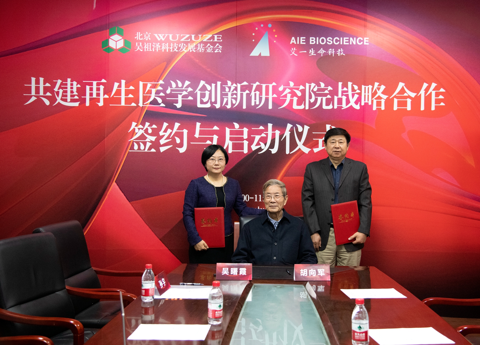 中國科學(xué)院院士吳祖澤,北京吳祖澤科技發(fā)展基金會理事長胡向軍、秘書長朱亮,清華大學(xué)出版社副總編孫宇,艾一生科副總經(jīng)理吳曙霞、干細(xì)胞實驗室主任李玉霞等出席簽約儀式。