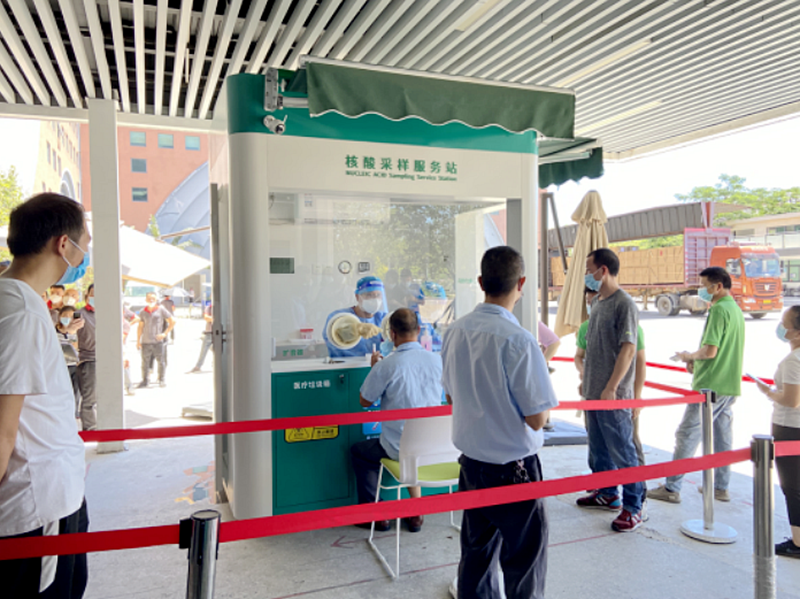 面對高溫酷暑,如何改善戶外核酸采樣條件?7月13日,國家健康基地園區(qū)內(nèi)的廣東領(lǐng)先展示股份有限公司(以下簡稱“領(lǐng)先展示”)廠區(qū)多了一個“核酸采樣服務(wù)站”,醫(yī)護(hù)人員在采樣服務(wù)站內(nèi)便可幫助員工更高效、更安全完成采樣。