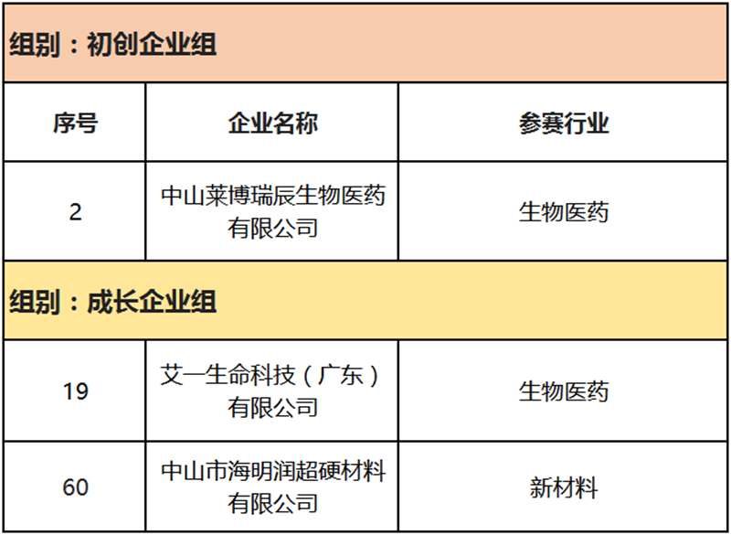 近日,廣東省科技金融綜合服務(wù)中心公告的第十一屆中國創(chuàng)新創(chuàng)業(yè)大賽(廣東賽區(qū))入圍全國賽企業(yè)名單顯示,健康基地園區(qū)企業(yè)中山萊博瑞辰生物醫(yī)藥有限公司(以下簡稱“萊博瑞辰”)、艾一生命科技(廣東)有限公司(以下簡稱“艾一生科”)和中山市海明潤超硬材料有限公司(以下簡稱“海明潤”)成功入圍,占全市30%。