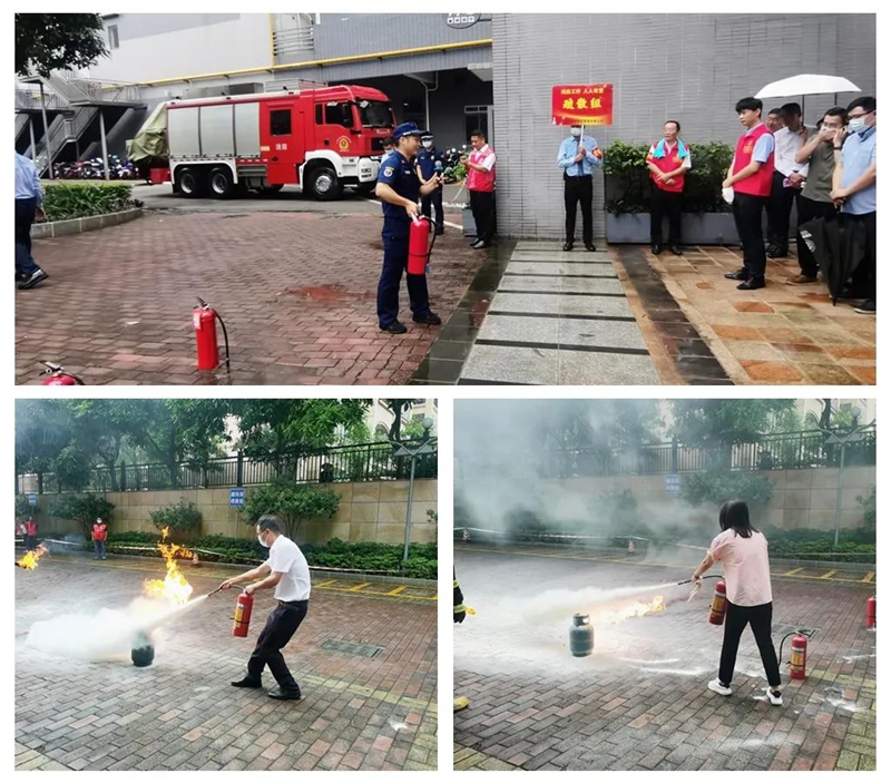 在完成疏散演練后,為進(jìn)一步加強(qiáng)樓內(nèi)員工應(yīng)對(duì)突發(fā)事件的處理能力,學(xué)會(huì)如何自救和救援,火炬區(qū)消防大隊(duì)消防人員現(xiàn)場演示了滅火器的使用,員工們積極參與其中,學(xué)習(xí)積極性高漲。