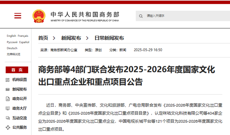 自2007年以來,商務部、中央宣傳部、文化和旅游部、廣電總局等4部門聯(lián)合,每兩年評審認定一批國家文化出口重點企業(yè)和重點項目,旨在培育一批具有國際競爭力的外向型文化企業(yè),推動對外文化貿(mào)易高質(zhì)量發(fā)展,迄今累計評選出3329家企業(yè)、1298個項目,范圍涵蓋新聞出版、廣播影視、文化藝術、游戲動漫等文化貿(mào)易領域。在政策引導下,一大批文化企業(yè)積極開拓國際市場,文化出口規(guī)模不斷擴大,國際競爭力不斷提升,成為推動文化走出去的骨干力量。