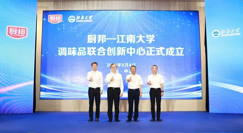 9月4日,健康基地園區(qū)企業(yè)美味鮮旗下品牌廚邦與江南大學(xué)正式簽署協(xié)議,共同成立“廚邦—江南大學(xué)調(diào)味品聯(lián)合創(chuàng)新中心”。中國工程院院士、江南大學(xué)校長陳衛(wèi)攜項目團隊,中炬高新董事長黎汝雄及廚邦相關(guān)管理和研發(fā)人員共同出席簽約儀式,中山市科技局及火炬高新區(qū)領(lǐng)導(dǎo)參與見證。
