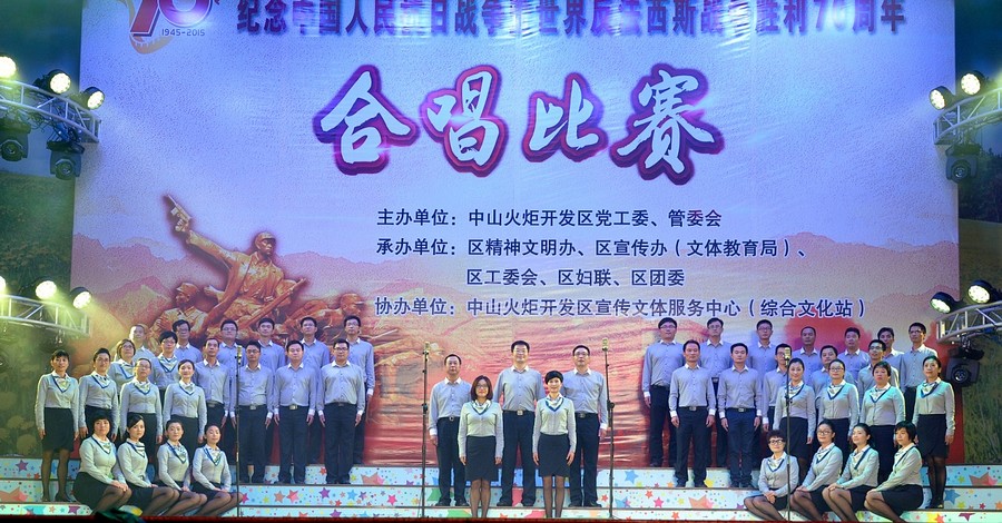 9月22日,由中山火炬開發(fā)區(qū)黨工委、管委會主辦的紀念中國人民抗日戰(zhàn)爭暨世界反法西斯戰(zhàn)爭勝利70周年合唱比賽(企業(yè)組)拉開帷幕。健康基地全體員工積極參賽,并斬獲銀獎。