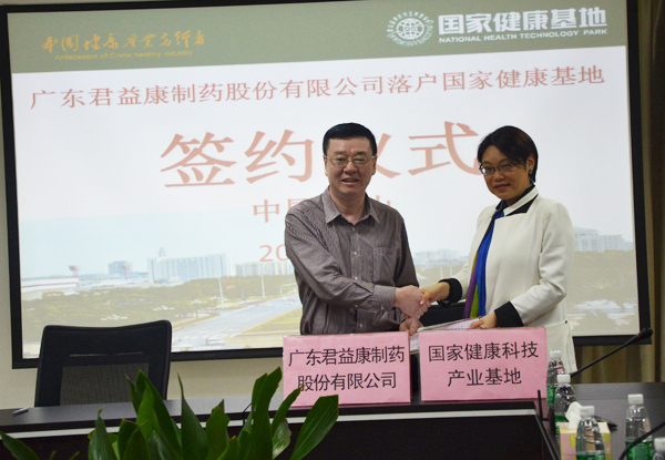4月1日,國家健康基地總經理方迎和廣東君益康制藥股份有限公司(下簡稱“君益康制藥”)董事長王君在國家健康基地會議室簽約,標志著君益康制藥正式落戶國家健康基地。