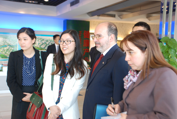當(dāng)日上午,古巴駐華大使白詩(shī)德一行首先參觀(guān)了健康基地生物谷展廳,健康基地工作人員為其介紹了園區(qū)概況、地理優(yōu)勢(shì)、下屬企業(yè)、優(yōu)惠政策等。座談中,白詩(shī)德詳細(xì)了解了火炬開(kāi)發(fā)區(qū)的發(fā)展歷史、健康產(chǎn)業(yè)園區(qū)的創(chuàng)辦初衷,以及中山市、開(kāi)發(fā)區(qū)和健康基地對(duì)落戶(hù)企業(yè)提供的相關(guān)扶持政策、稅收優(yōu)惠,園區(qū)管理模式和服務(wù)經(jīng)驗(yàn)等。