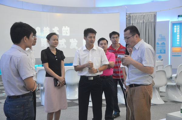 中山大學(xué)受委托作為省戰(zhàn)略性新興產(chǎn)業(yè)專(zhuān)項(xiàng)資金的第三方評(píng)價(jià)機(jī)構(gòu),派出賴金天博士一行于當(dāng)日下午參觀了廣東健康醫(yī)療信息技術(shù)服務(wù)區(qū)展廳和醫(yī)療信息化的試點(diǎn)單位健康花城社區(qū)。