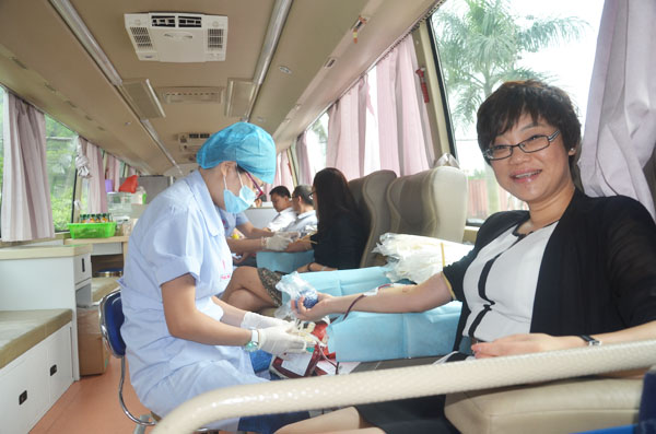 健康基地總經(jīng)理方迎第一個獻血