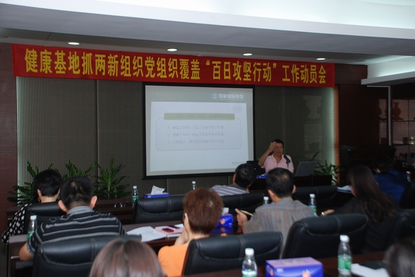 本網(wǎng)訊  為擴(kuò)大黨在兩新組織中的組織和覆蓋工作,5月18日,國(guó)家健康基地黨總支集中全體黨員專門召開(kāi)兩新組織黨組織覆蓋“百日攻堅(jiān)行動(dòng)”工作動(dòng)員大會(huì)。大會(huì)就“攻堅(jiān)行動(dòng)”的工作任務(wù)進(jìn)行了全面布署,并就相關(guān)的工作業(yè)務(wù)知識(shí)進(jìn)行了培訓(xùn)。大會(huì)還同時(shí)成立了國(guó)家健康基地抓兩新組織黨組織覆蓋“百日攻堅(jiān)行動(dòng)”領(lǐng)導(dǎo)小組,全體黨員和群眾一起就省市區(qū)黨代會(huì)有關(guān)精神進(jìn)行了傳達(dá)和認(rèn)真學(xué)習(xí)。
